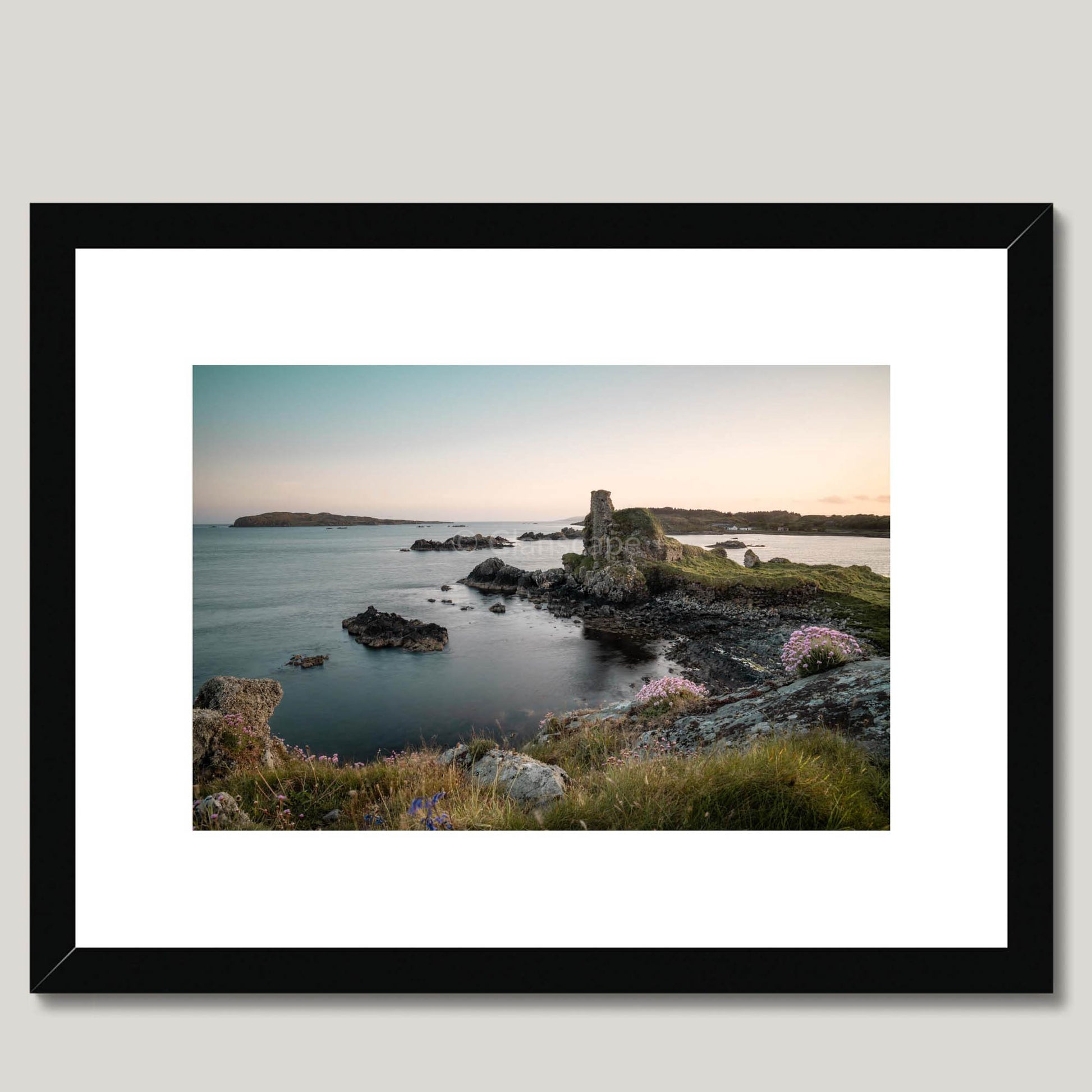 Connect to the history of Clan MacDonald, with this stunning, framed & mounted landscape photograph print of Dunyvaig Castle.