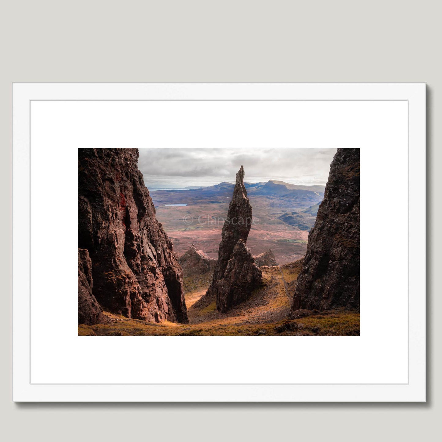 Connect to the history and discover the origins of Clan MacNeacail, with this stunning, framed & mounted landscape photograph print of The Quiraing Needle.