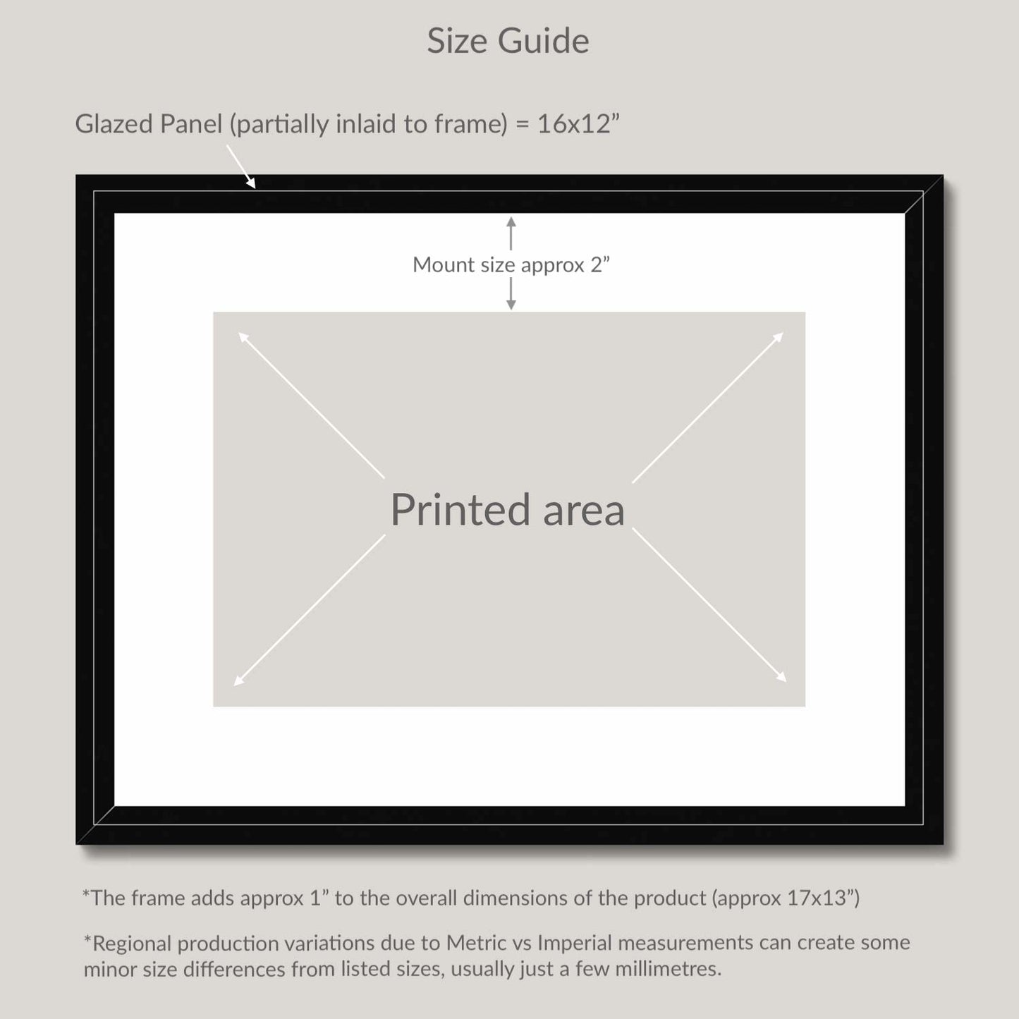 Please note: The listed size (e.g., 16"x12") for Framed & Mounted prints refers to the glazed area, including the printed image and 2" wide mount. The frame, adding an extra 1" per side, isn't included in these dimensions. Therefore, the total product size will be larger than the dimensions given.